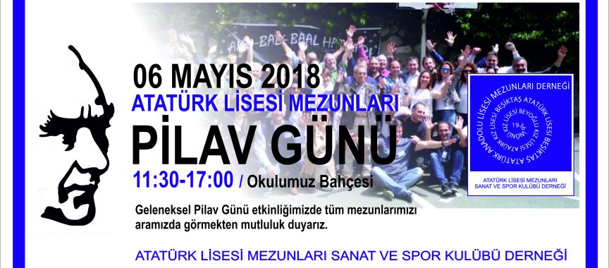 AKL, BAL, BAAL mezunu okuldaşlarımız ile bizlere sonsuz emekleri geçen öğretmenlerimizi bir arada görmek, özlem gidermek, anılarımızı paylaşmak ve hoşça vakit geçirmek amacıyla her yıl düzenlemekte olduğumuz GELENEKSEL PİLAV GÜNÜ etkinliğimizi 06 Mayıs 2018 Pazar günü saat 11:30-17:00 arasında okulumuzun bahçesinde gerçekleştiriyoruz.