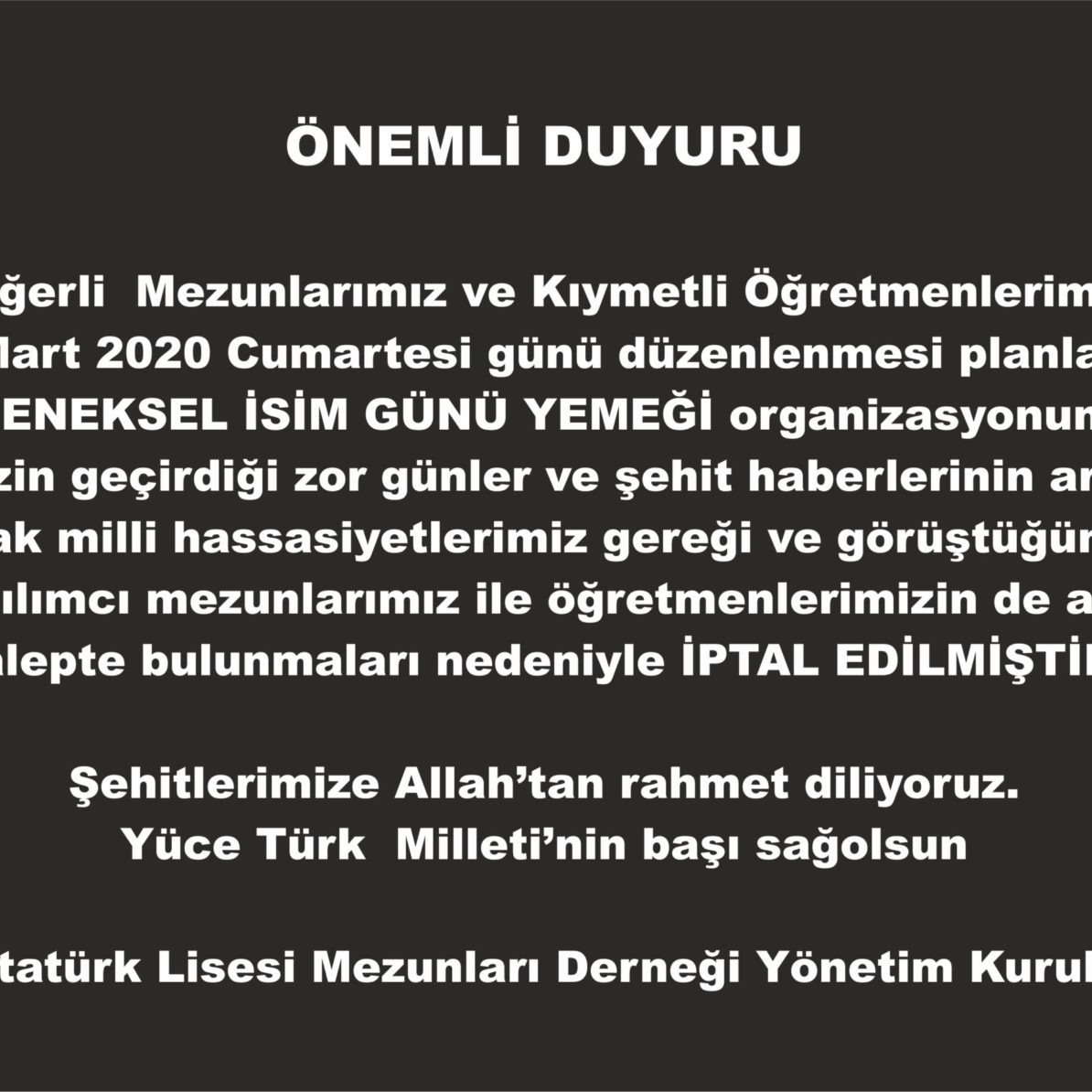 ÖNEMLİ DUYURU